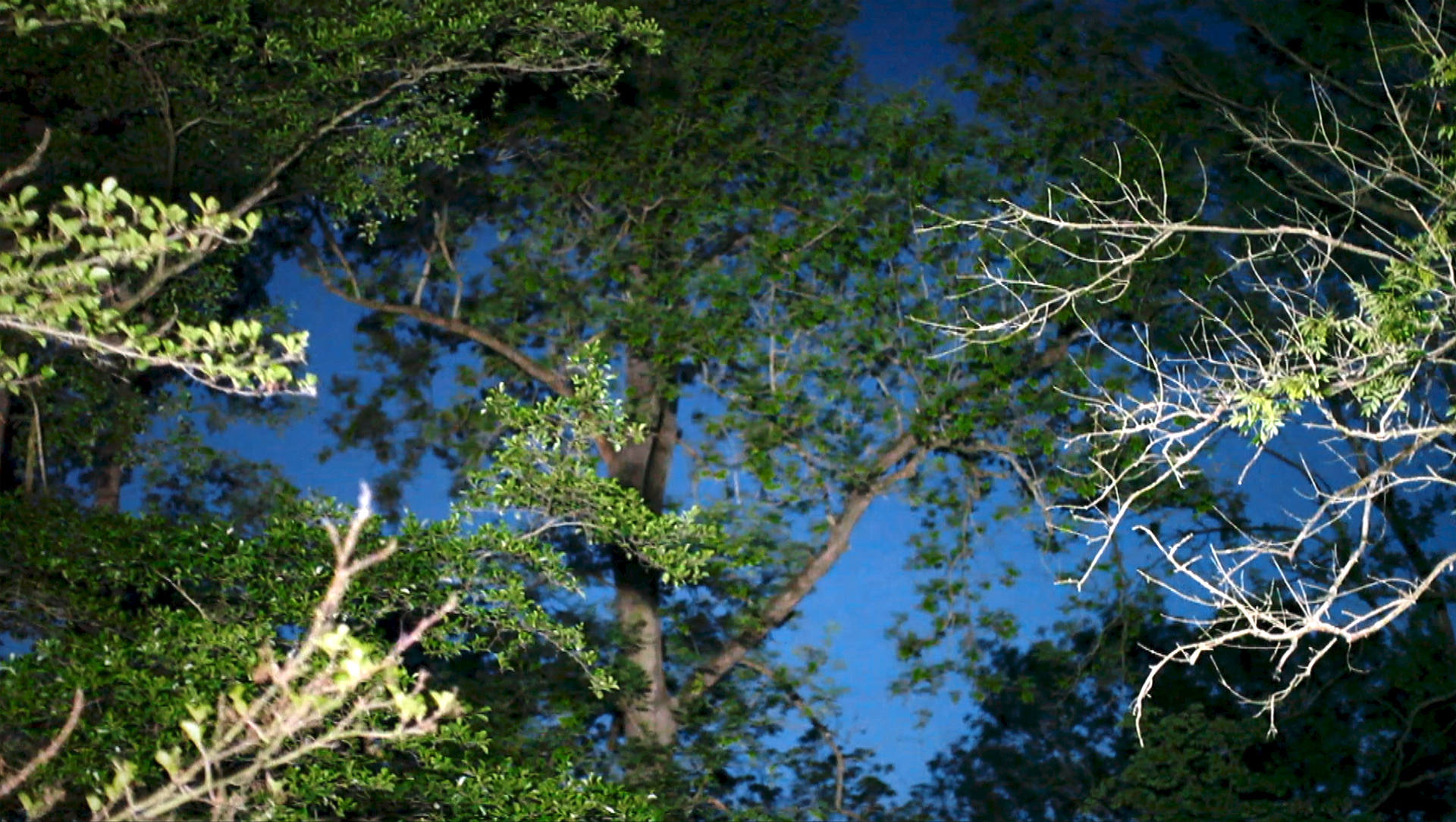 Eine Kahnfahrt führt uns durch die nächtlichen Kanäle des Spreewälder Hochwaldes. Behutsam gleitet die Kamera zwischen Bäumen hindurch, die sich wie Skulpturen sachte aus dem Dunkel heraus formen.